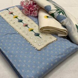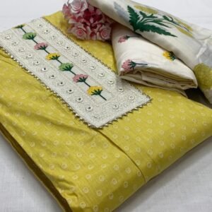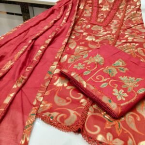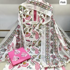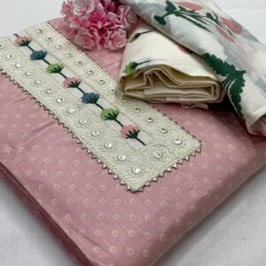 Cotton WIth Embroidery & Crochet Laces (Pink Color)