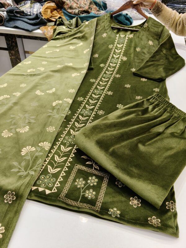Cristal velvet mehndi green