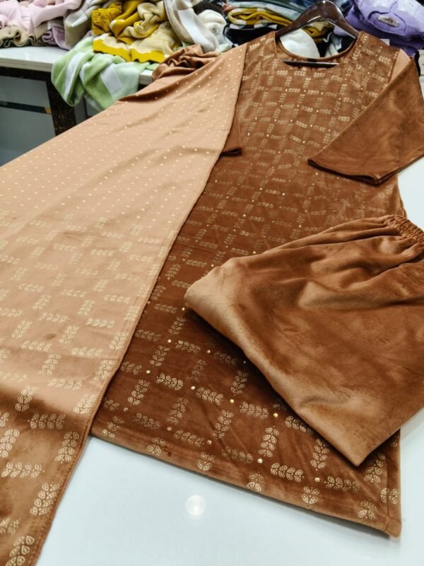 Velvet 3 pc block printed suit