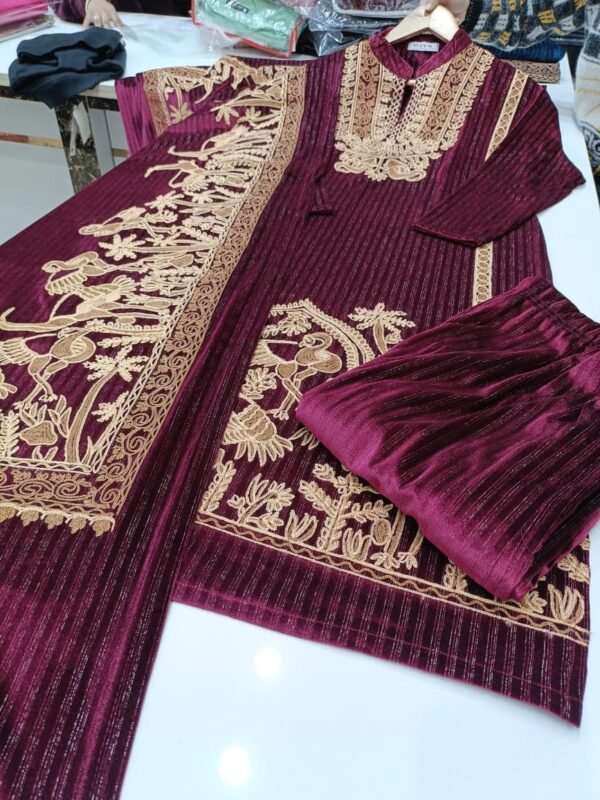 Curduroy velvet 3pc ari embroidery suit