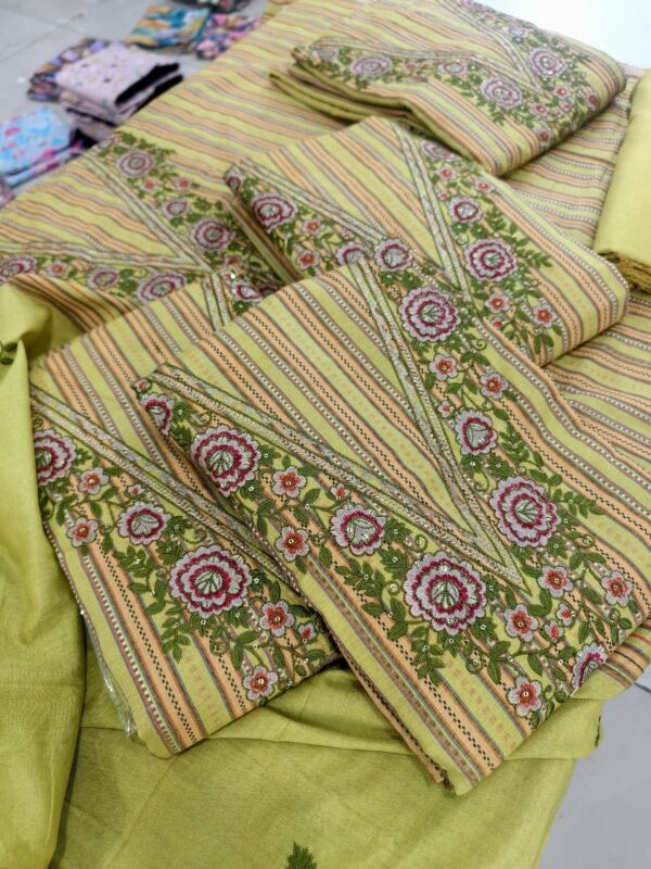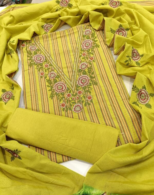 Handloom cotton suit v neck embroidery