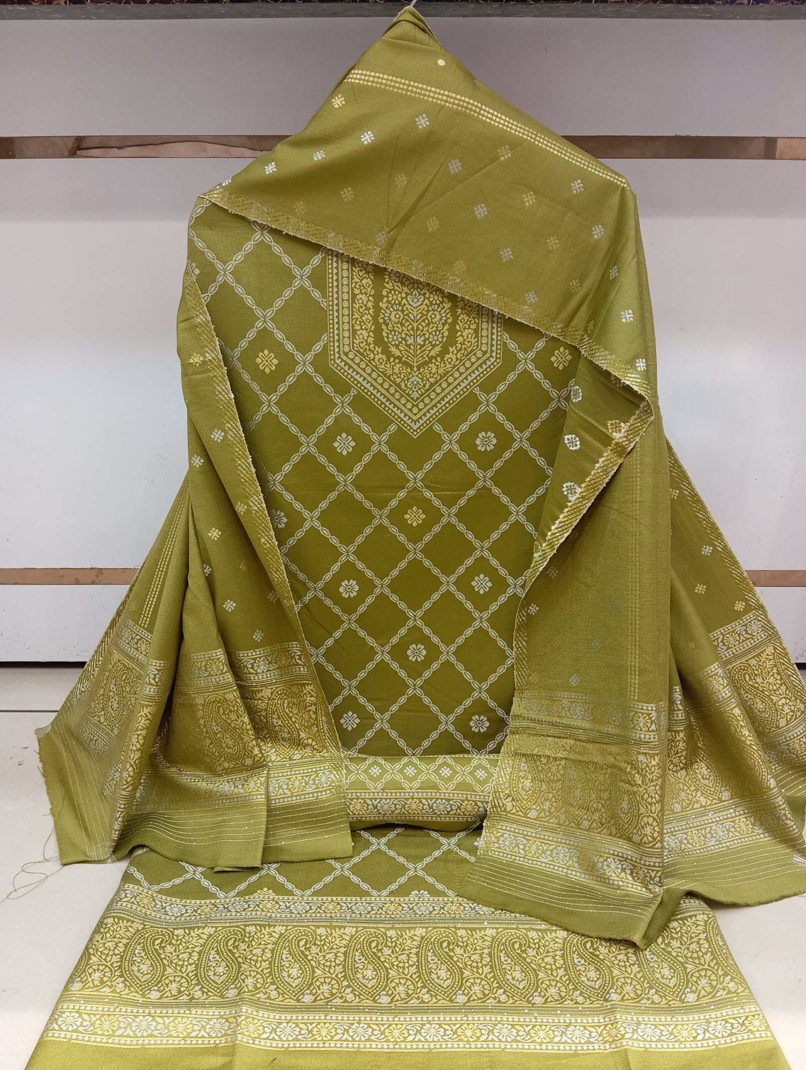 Allover korean velvet 2.5 mtrs shirt with bottom embroidery work.